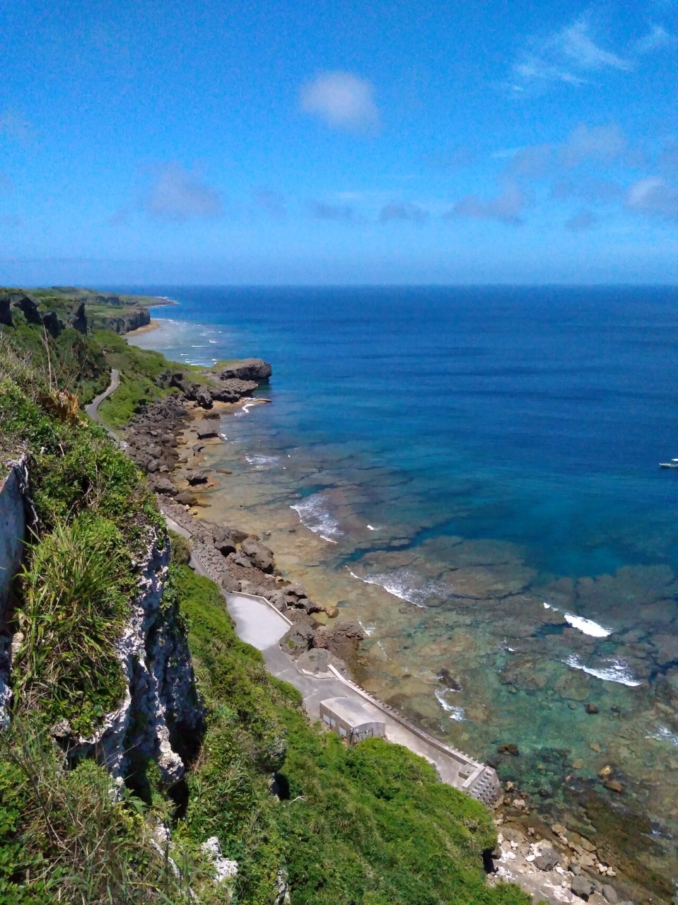 伊江島港から見ると、島の反対側にあります。島の北側は断崖絶壁が続き、海の美しさとあいまって絶景が望めます。