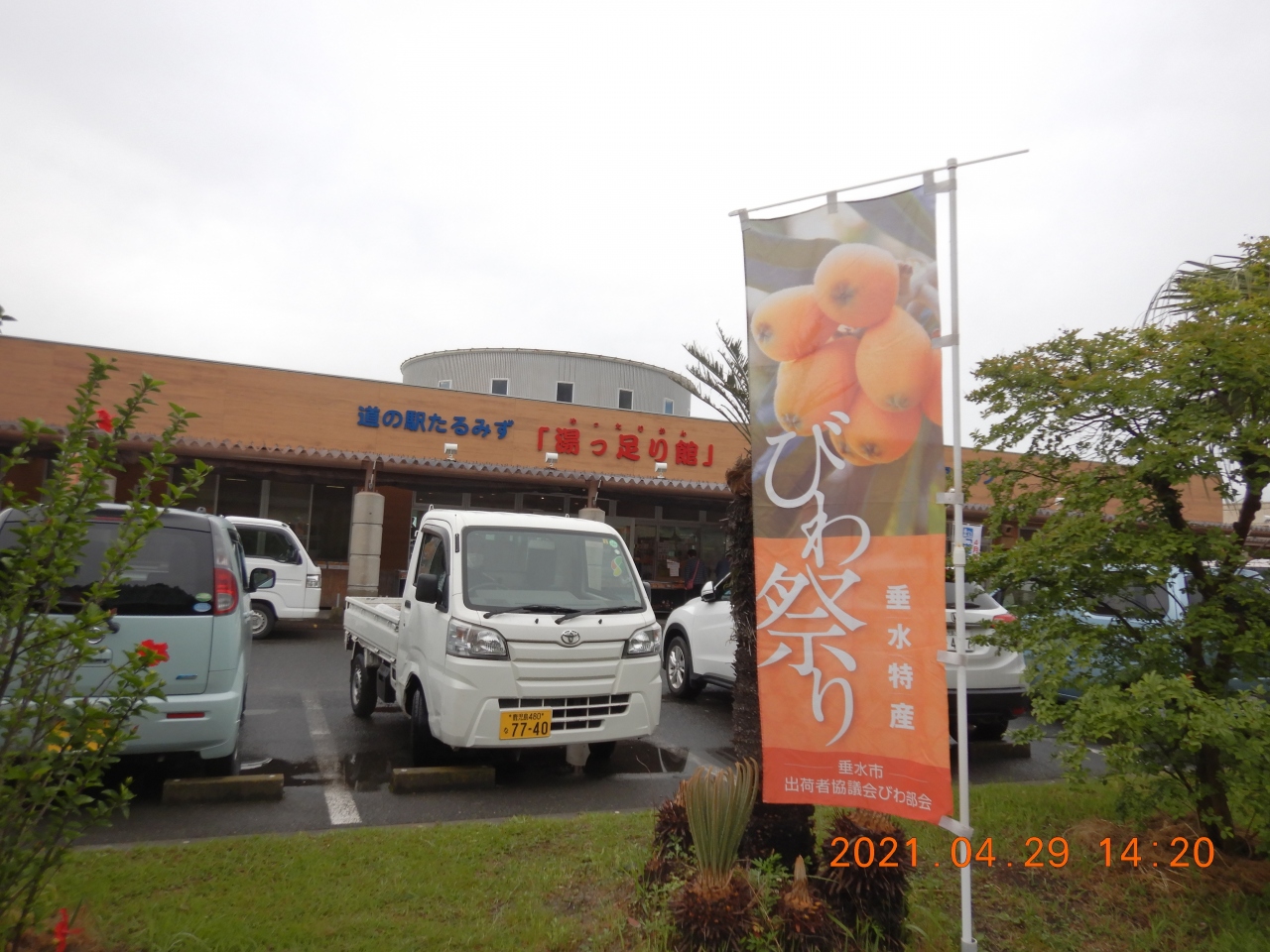 道路沿いには”びわ祭り”の幟が沢山はためいていました!!