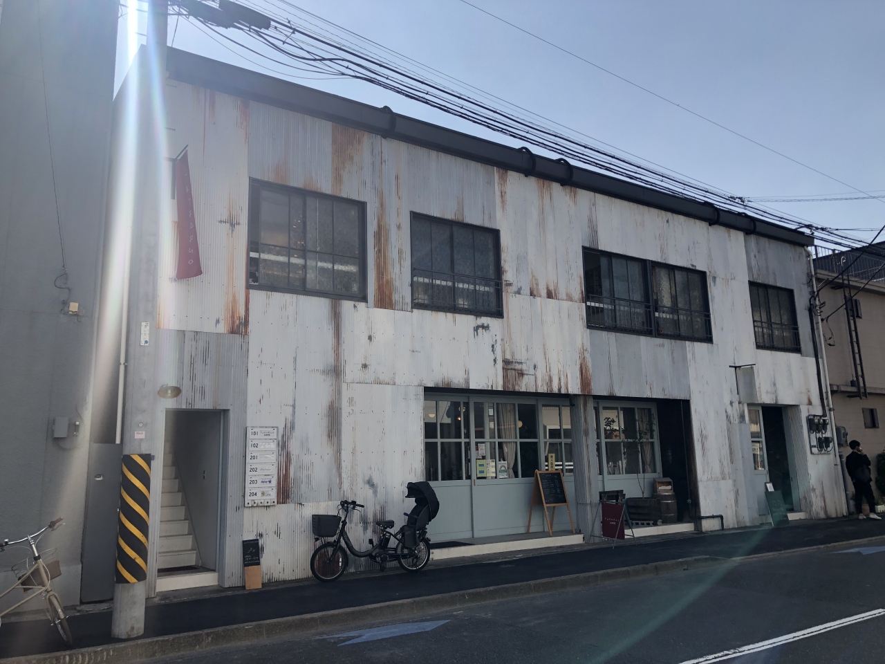 古いアパートを改装した施設。個性的なショップとカフェが入居しています。