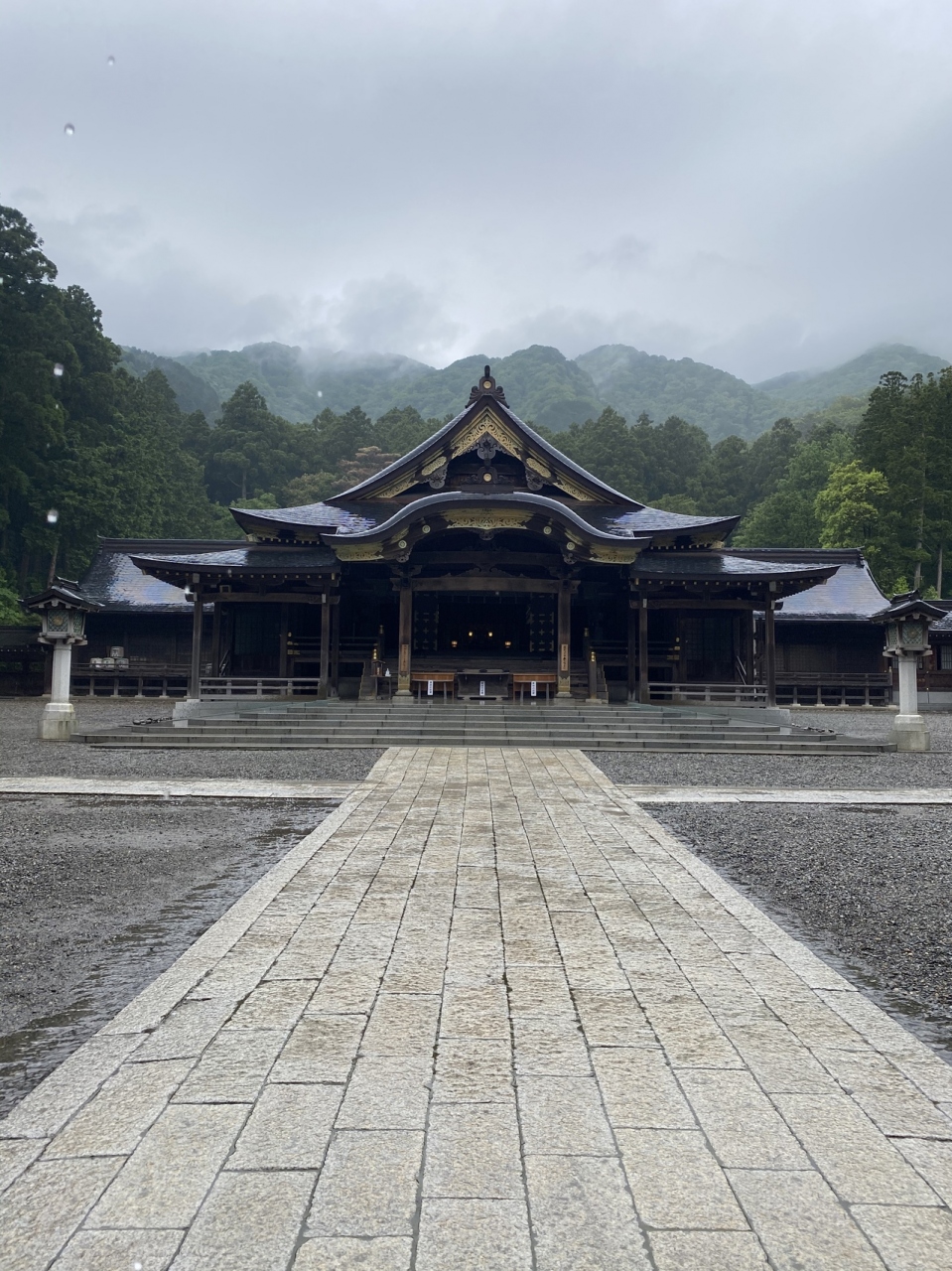 神社の向こうには山が広がっていて、すごくパワーを感じます。