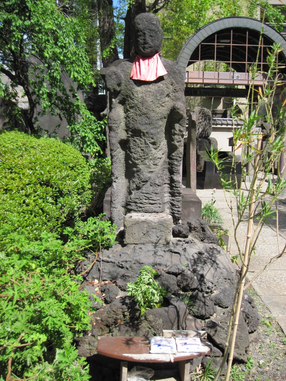 両国の回向院境内にあるお地蔵様です。とても穏やかでやさしい顔立ちのお地蔵様で、おもわず手を合わせました。塩地蔵の由来は良く知りませんが、お名前が塩地蔵というだけあって、どなたかがお供物に袋に入ったお塩を差し上げていました。