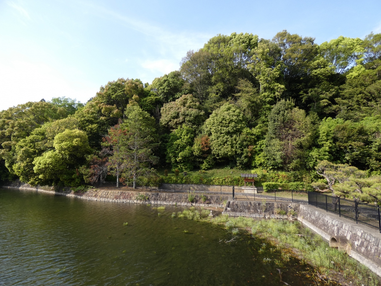 橿原市の南部の石川池(剣池)の畔に位置する第8代孝元天皇(在位前214~158)陵。剣池島上陵(つるぎのいけしまのえのみささぎ)で石川池が周濠の様になっていて池に映える緑豊かな御陵は美しい景観です。欠史八代の一人で実在性は不確かですが宮内庁管理陵です。