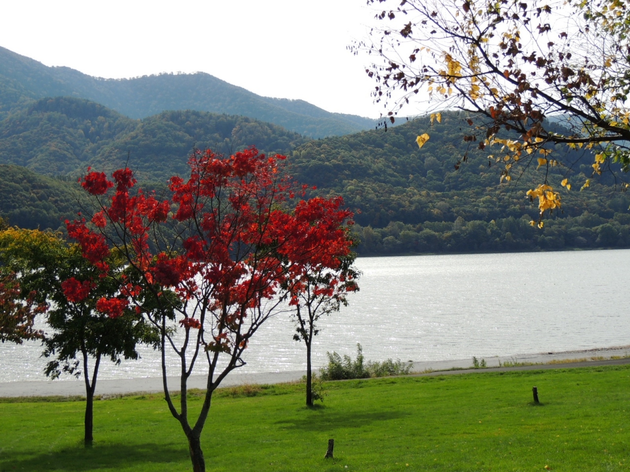 かなやま湖は空知川をせき止めてできたダム湖です。東西に長く自然に囲まれた場所にあります。ダムの近くには展望台もあり、上から絶景を眺める事ができます。西側にはキャンプ場や公園があり、駐車場も完備されています。特に紅葉の季節には、赤や黄色に染まる紅葉が映える景色を望めます。