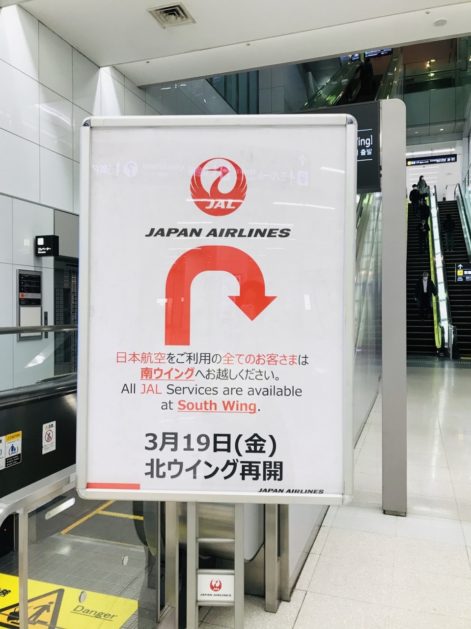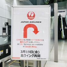 東京モノレールで羽田空港に到着したのですが、改札を出たところや北ウイングに上がるエスカレーターのところにも案内がありました。