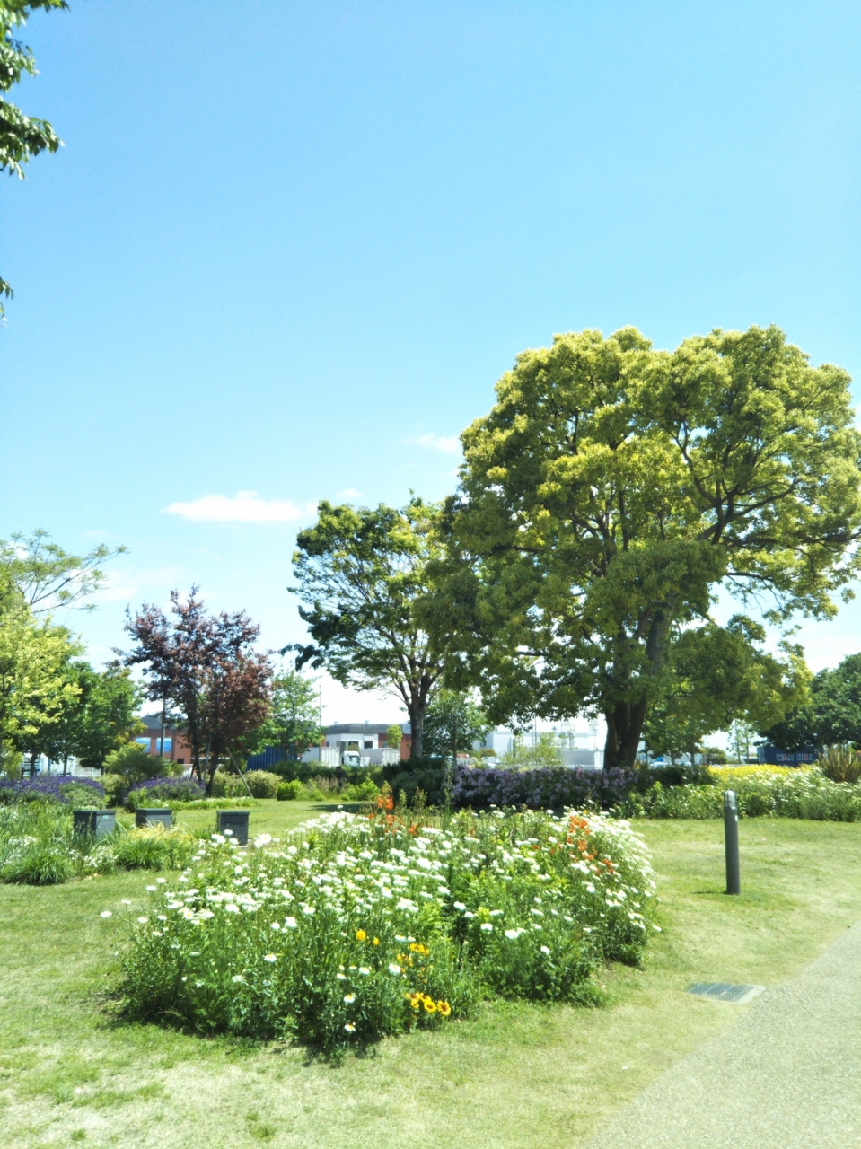 横浜の新港、横浜ワールドポーターズ前にある「新港中央広場」は、四季折々の花がとても綺麗に管理されている広場となっています。