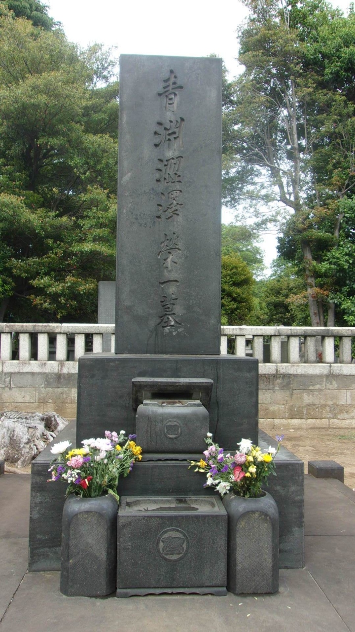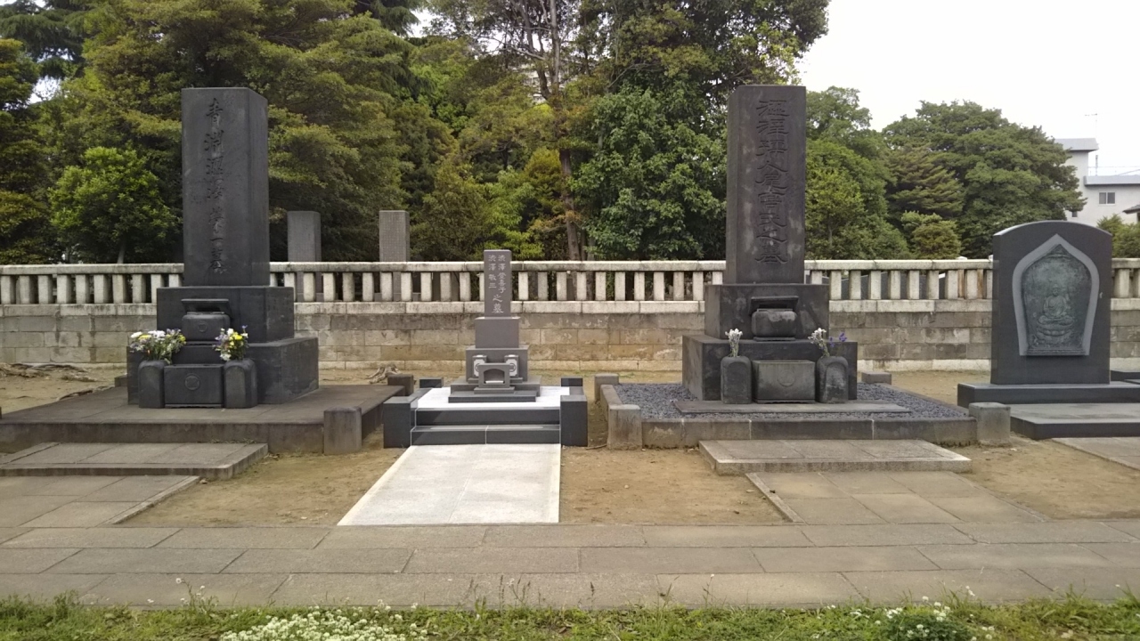 谷中霊園には、徳川慶喜の墓など、もっと広く立派な墓もあるが、広さは第一級とも感じる。外柵などなく、開けっ広げな人柄を象徴しているかのようにも感じる。