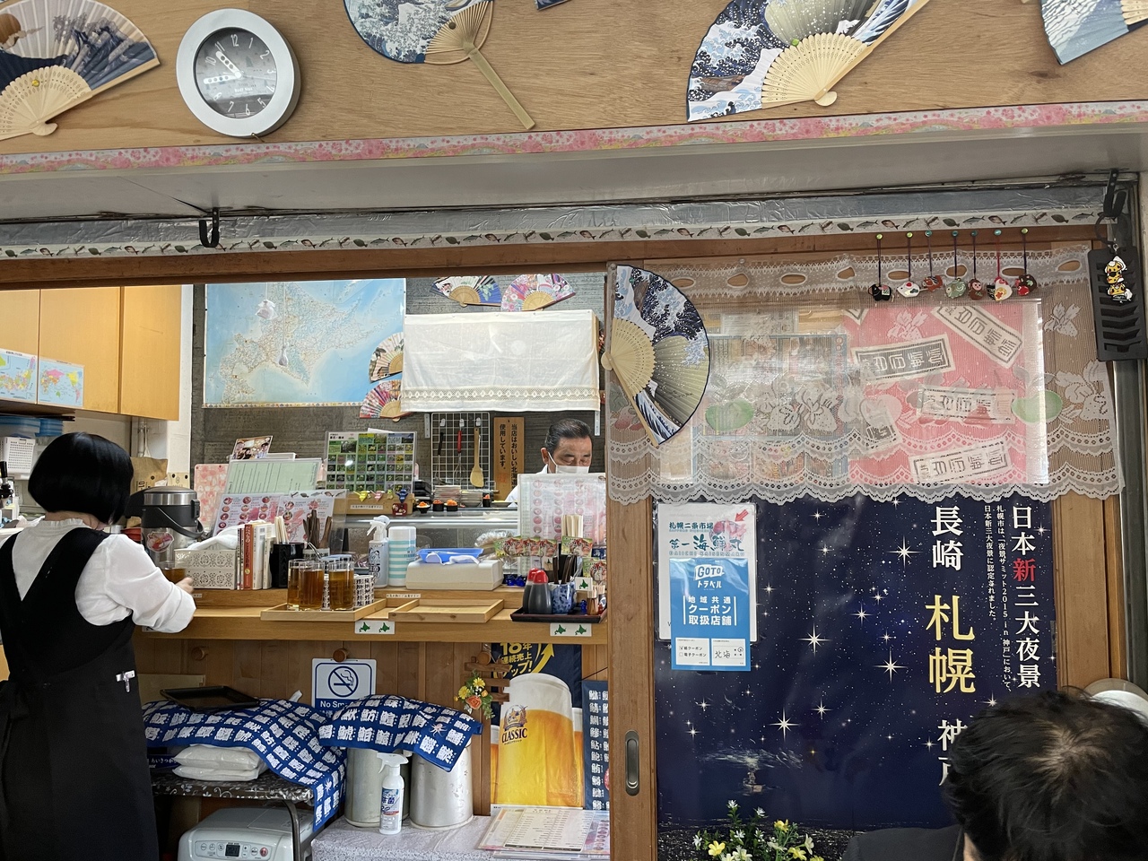 北海道といえば海鮮!本当はお寿司を探していたのですが、早くからやっているお店がなく…角にあったこじんまりとしたこちらのお店で早いランチをいただくことに^_^ 私はカニが苦手なのでカニ抜きで作ってもらいました。トロも乗っていたのですが、油っぽくて食べれませんでした(・・;)
