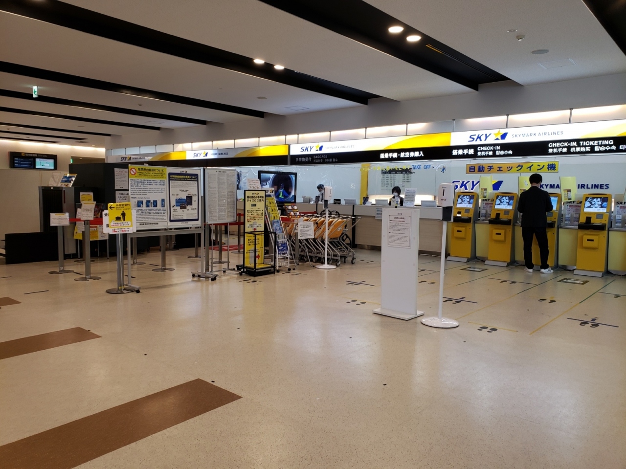 首都圏防空の要である百里基地を民間供用した空港で滑走路の西側に小さな空港ターミナルがあります。首都圏第三空港を目指して造られたのはありますが、アクセスは決して良いとは言えず、就航便数も百里基地の運用を優先する関係で増やせないので利便性もあまり・・・。コロナ禍の前は春秋航空などが中国路線を運航していましたが、現在は運休になっています。その為か国際線出発カウンターは子供の絵が展示されている状態でした。