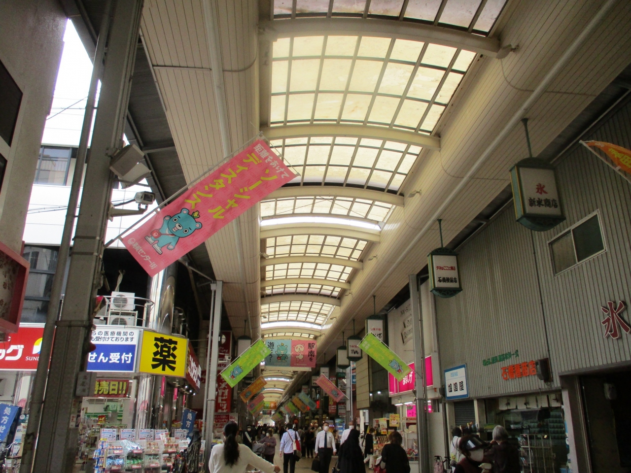 JR高槻駅と阪急高槻駅の間にあるアーケード商店街です。道幅はゆったりしていて歩きやすいです。お店は食品、飲食店、ドラッグストア、雑貨、100円ショップなどたくさんあり、お買い得商品を探すのも楽しいです。市場もあります。