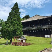 東大寺の広い敷地内の東側、大仏殿から石段を上がった先にあります。旧暦2月に「お水取り(修二会)」が行われることが、名前の由来となっています。2005年に国宝に指定されました。とても大きなお堂からは奈良市街が見渡せます。以前お水取りを見に行った時は、真っ暗な中に松明から炎が上がって火の粉が舞い散り、すごい迫力でした。今回訪れた時は新型コロナの影響で観光客や修学旅行生もおらず、境内はとても静かでした。