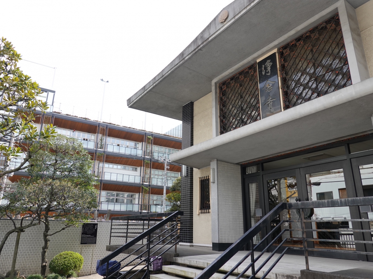 浄土宗寺院の浄念寺は、台東区立蔵前小学校と道一本隔てて向かいあう位置関係です。お寺そのものは近代的な本堂で、境内も狭くあまり印象には残りませんでしたが、実は400年以上の歴史をもつ古刹で、かつては数多くの塔頭寺院を擁するお寺だったということです。境内越しには、モダンで、マンションと見まがうような蔵前小学校の校舎が見え、お寺との対比がとても印象的でした。