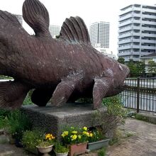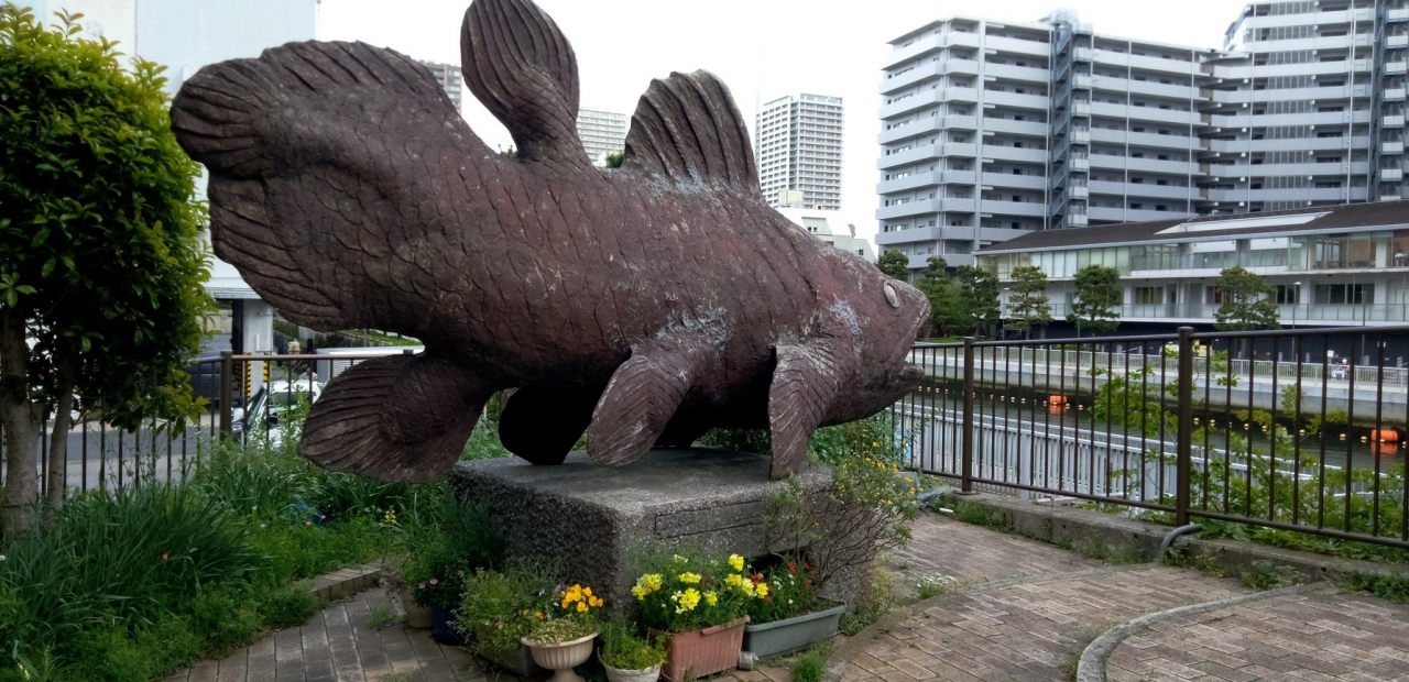 森下周辺を散歩していて、西深川橋に差し掛かった時、橋の脇に巨大な魚のオブジェがありました。大きくて迫力がある魚の姿はシーラカンスだと思います。なぜこの場所に置かれたのかはわかりませんが、ともかくインパクトが十分にありました。