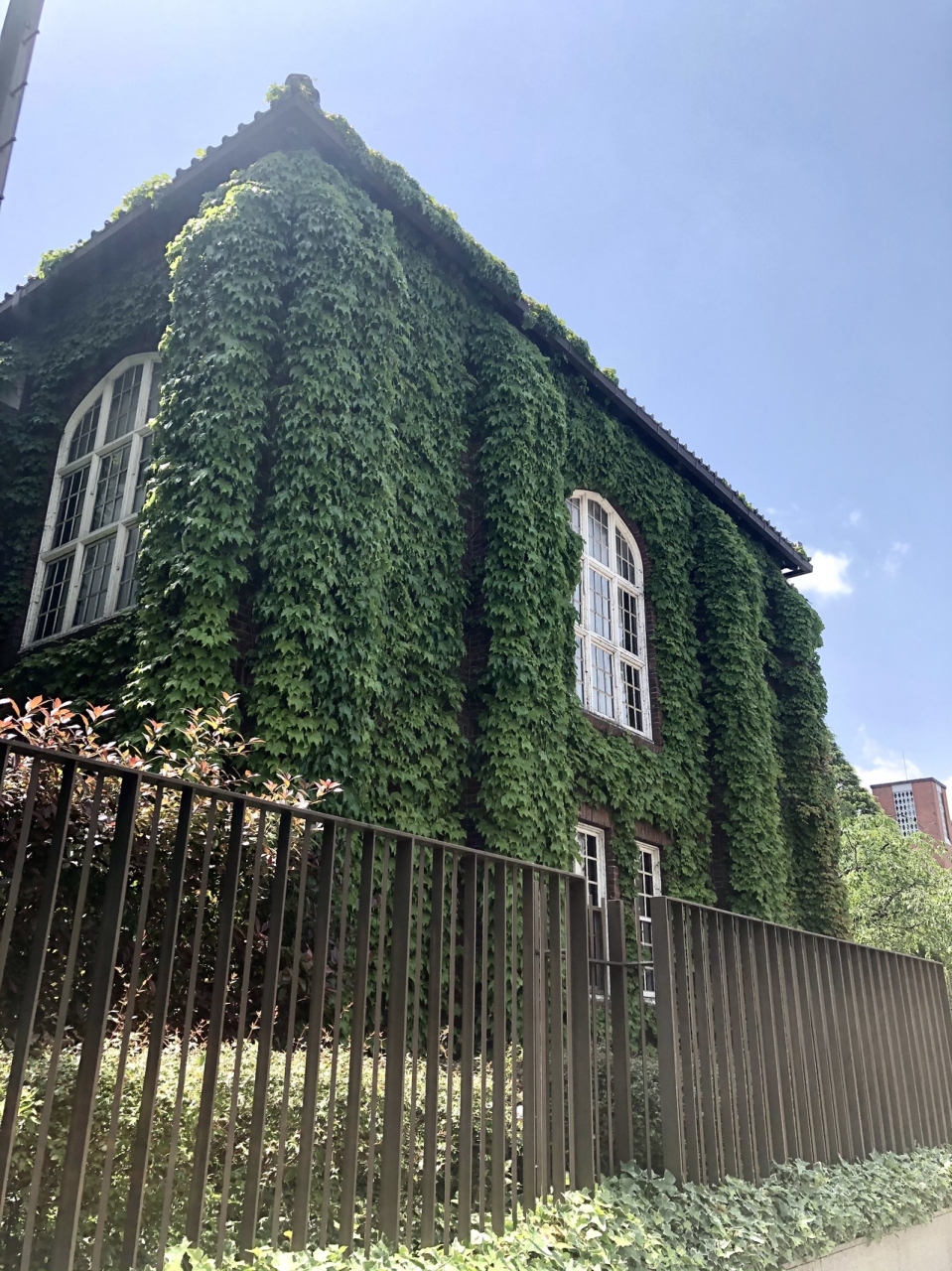 赤煉瓦が見えないほどの蔦ですが、建物の美しさを損なうことなく上手く生かされています。