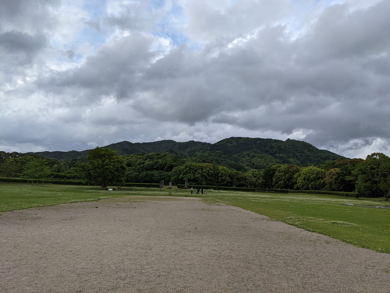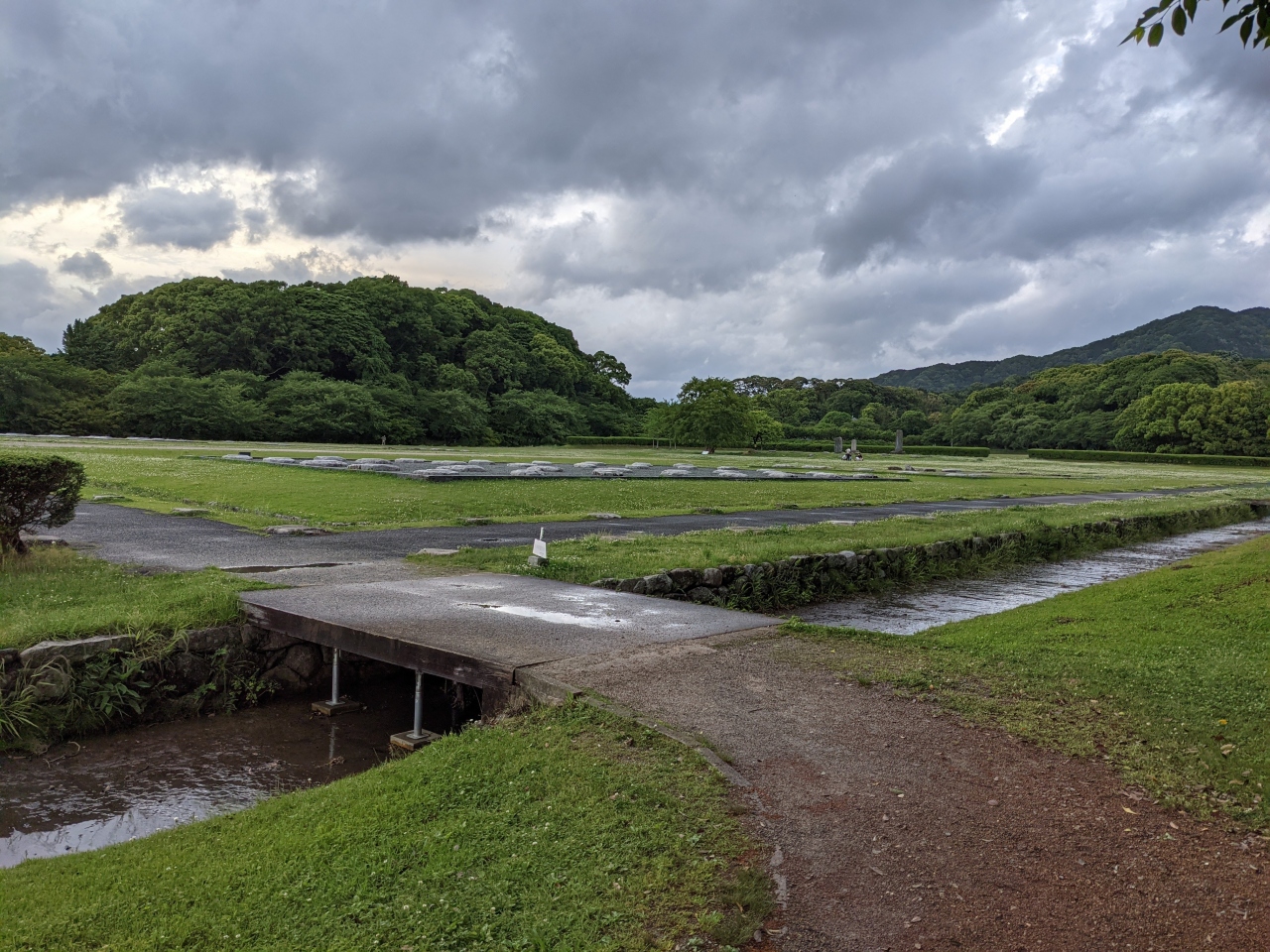 太宰府天満宮からは徒歩30分、3キロぐらいあります。当然建物は何も残っておらず、礎石がただ残るのみです。奈良の平城京跡みたいな感じですね。7世紀には九州の政治の中心でした。鎌倉時代にはもう廃れていたようです。