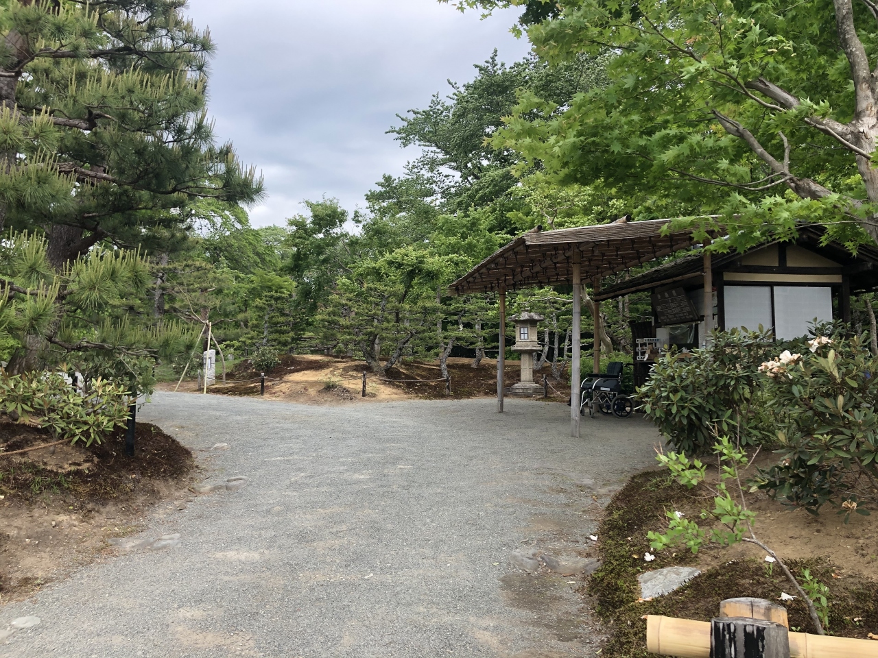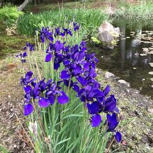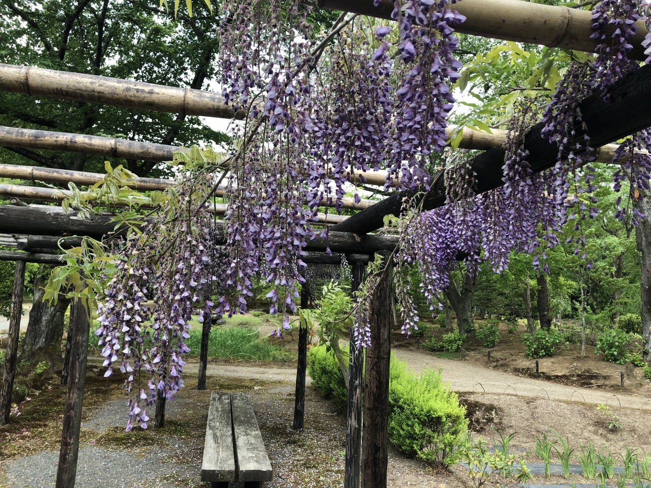 福島市にある本格的な日本庭園、この日はアヤメと藤の花が見ごろ
