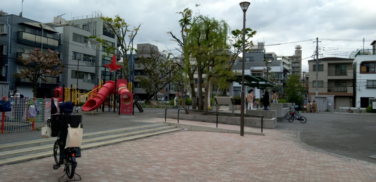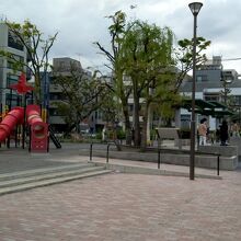 都会の町中によくある公園です。それほど大きくないので、お母さんが子供を遊ばせるには、目も行き届きます。公園内に設置されている遊具の中で、赤く塗装された滑り台が、タコのイメージでデザインされていて、とてもカラフルで可愛かったです。
