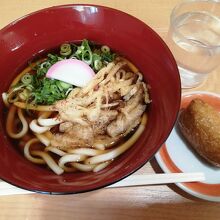 お味は…つゆが濃くて辛い。無類のだし汁好きとしてはもう少し薄いほうが飲み干しやすいんですが…。量はお値段相当でややもの足りません。稲荷寿司はうまいです。