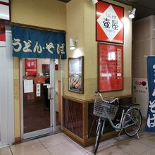 JR蒲郡駅構内にあるうどん、そばの店です。場所は改札向かってすぐ右手。店内にある食券機で先に食券を買います。「うどん」(税込380円)と稲荷寿司(1個90円)をチョイス。きしめんもあります。駅のうどん屋らしくカウンター立ち食いのみです。