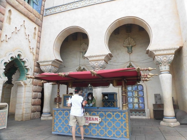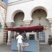 東京ディズニーシーのアラビアンコースト内に、アラビアン系のグッズやチャンドゥのぬいぐるみなどが販売されている、マーケットプレイスがあります。その前に、こちらのアイスクリームワゴンがありました。