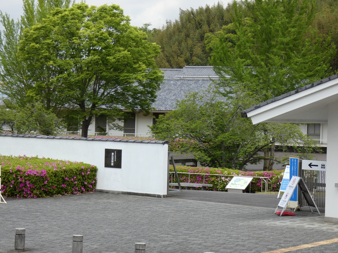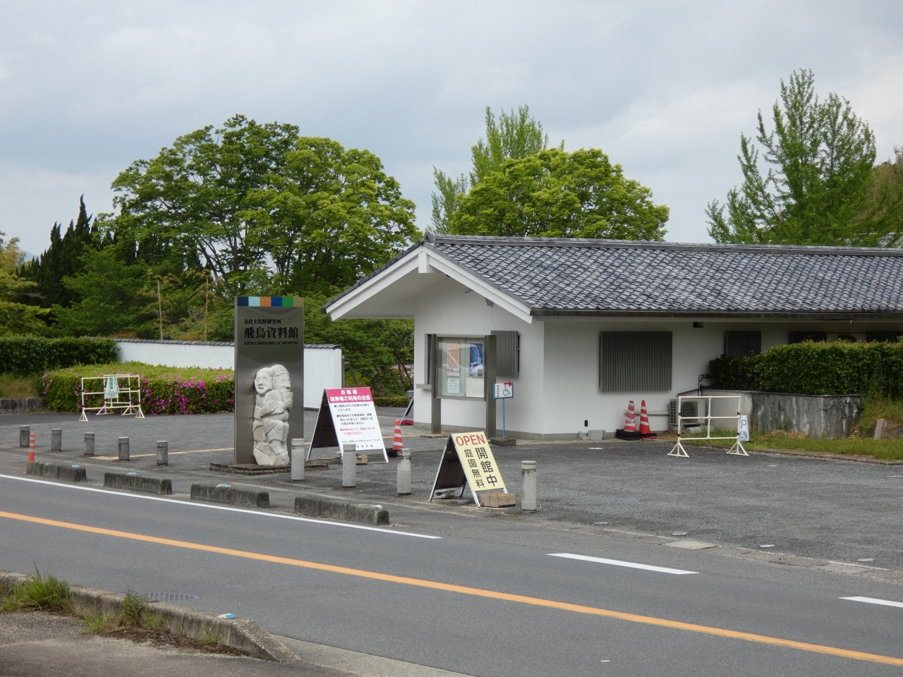 桜井から飛鳥へ続く磐余通の奥山交差点近くに建つ飛鳥の歴史と文化を紹介する資料館。奈良文化財研究所の付属機関で飛鳥地域の出土品の保管収蔵・展示の為に建てられた数寄屋風コンクリート造りの館です。飛鳥時代の宮殿や古墳、寺院などの資料が多く展示され古代史を学べます。館の周りは古墳庭園の様に綺麗になっています。