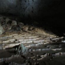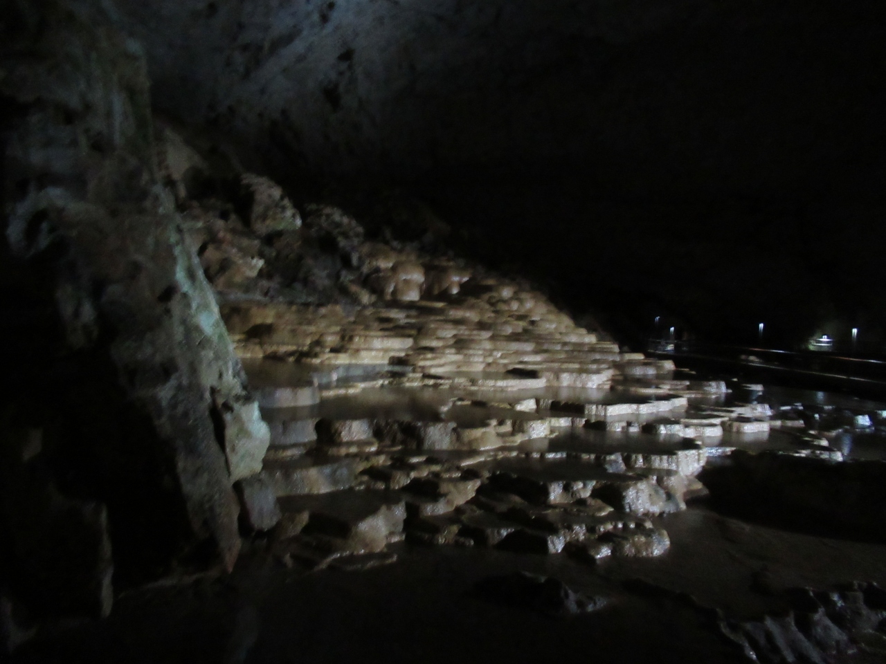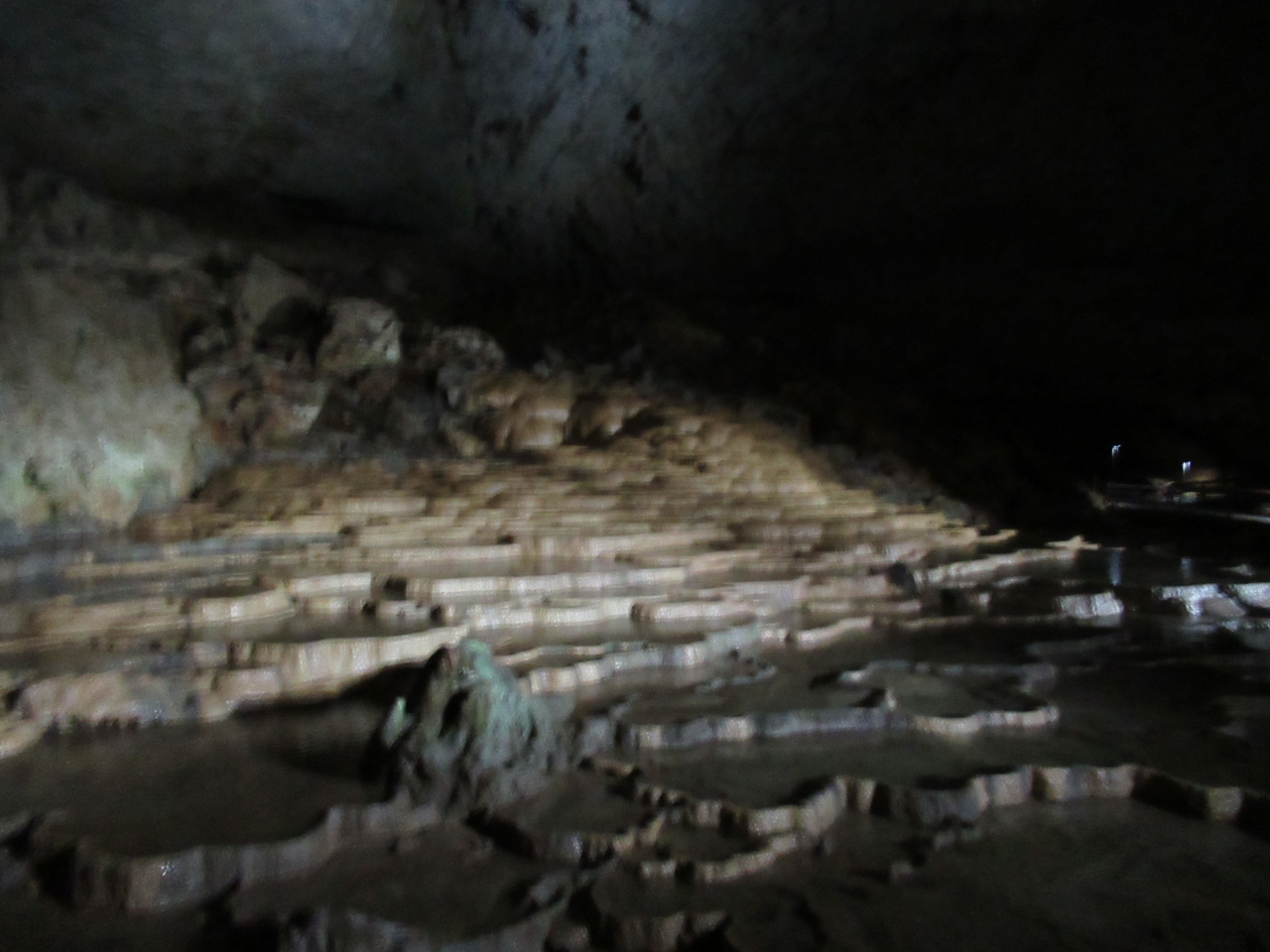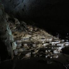 洞内がとても広い秋芳洞の見どころの1つです。上りコースですと、入口からそれほど遠くありません。広い池を通り過ぎて、ようやく鍾乳洞らしくなってきたと思ったら、広大な空間が現れ、こちらの景色が見えて、圧倒されました。