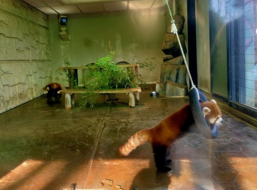 レッサーパンダがお出迎えしてくれて、ペンギンが泳ぐ姿が間近で見られ、他にも猿や鹿などたくさんの動物が飼育されています。奥には子供が遊べるスペースもあって・・