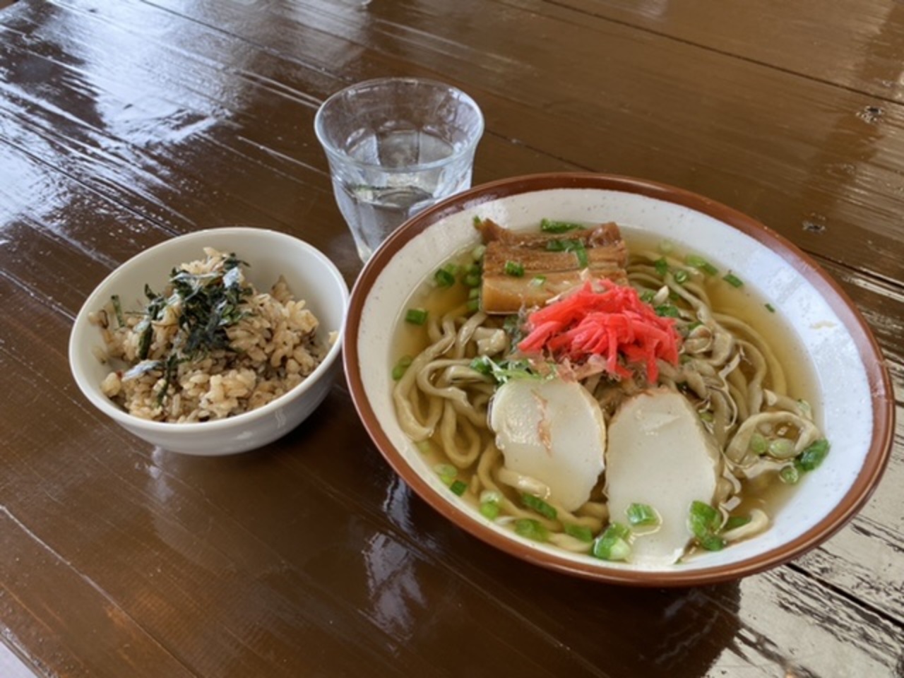 食べたのはモズクソバ中730円とモズクごはん220円!ソバにモズクが練り込んであって独特で美味しかったです。