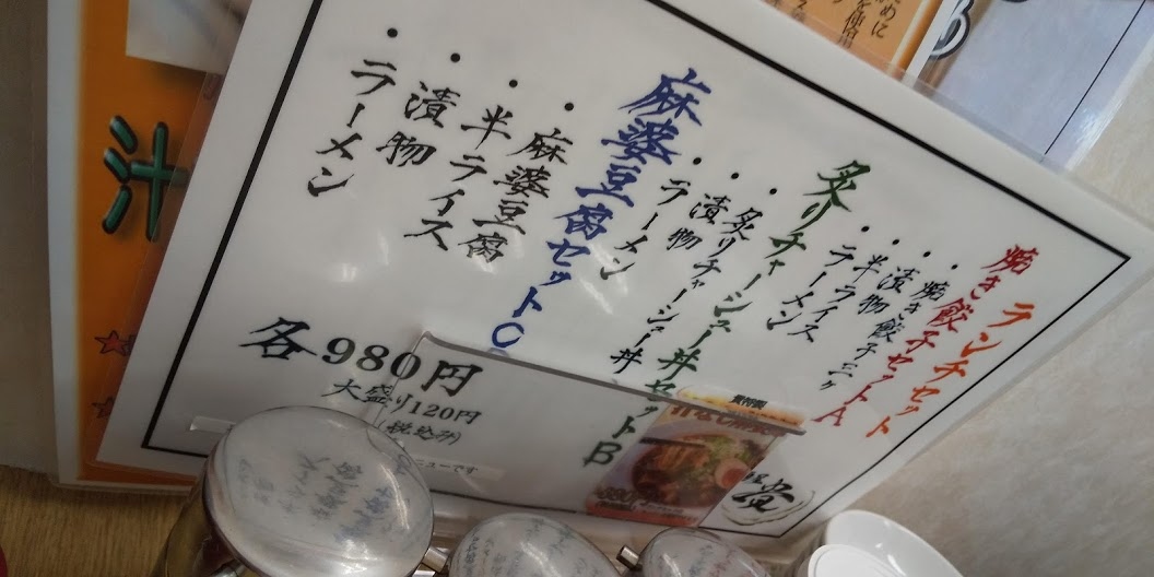 ランチセットが用意されていて1000円程度で佐野ラーメンと餃子やマーボーがいただけます。麺はつるつるで一部不揃い、手打ちなのでしょうか。スープもあっさりすっきり。餃子はもっちり