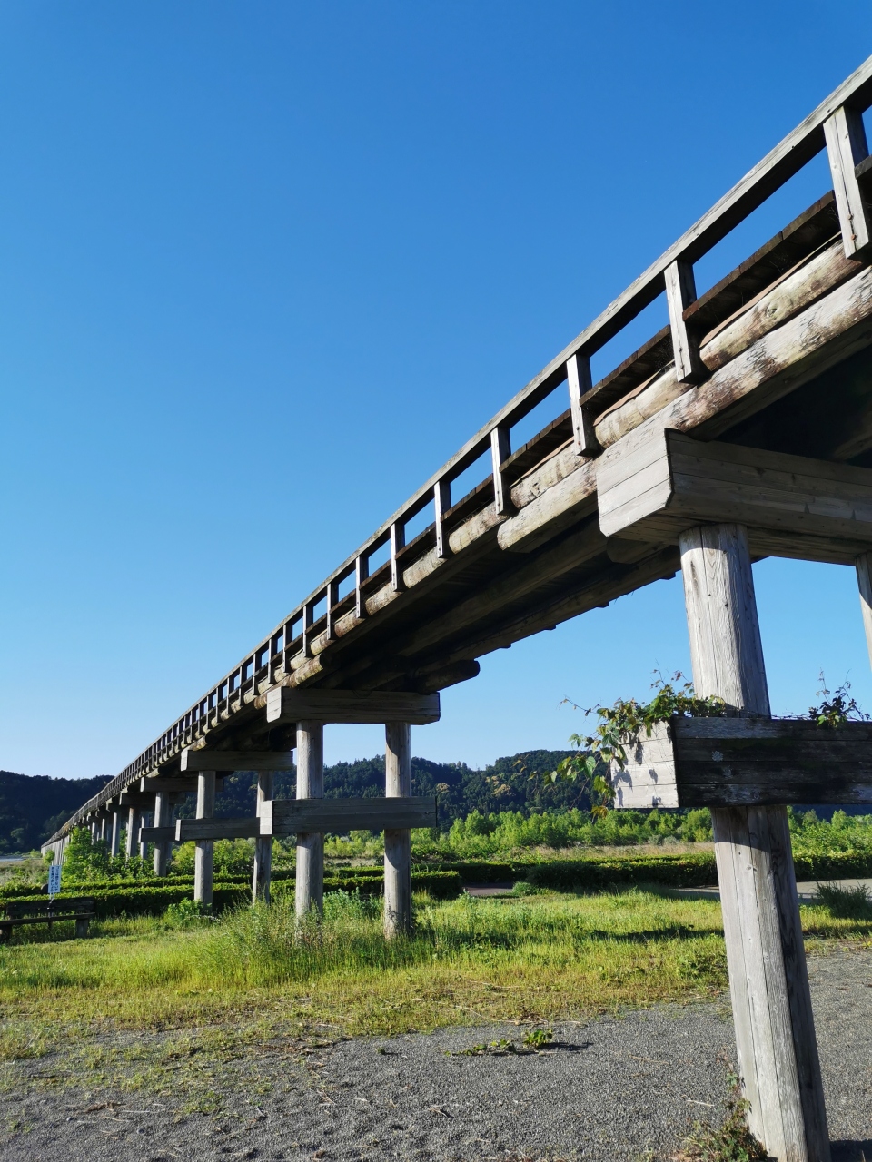 静岡県ドライブで訪問。島田市の大井川にかかる木造橋で「蓬莱橋」は世界一長い木造歩道橋としてギネス認定されていとの事です。歩いて渡ることができます。橋のたもとに通行料を入れる箱が置いています。お代は100円でした。橋の下にキレイで広い無料の駐車場がありますので便利です。木造橋で欄干も低いので高い所がコワイ私は通行は遠慮しました。見るからに素晴らしいです。
