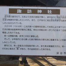 また歩いてすぐのところにはこのあたりの氏神で渋沢栄一ゆかりの諏訪神社もあります。