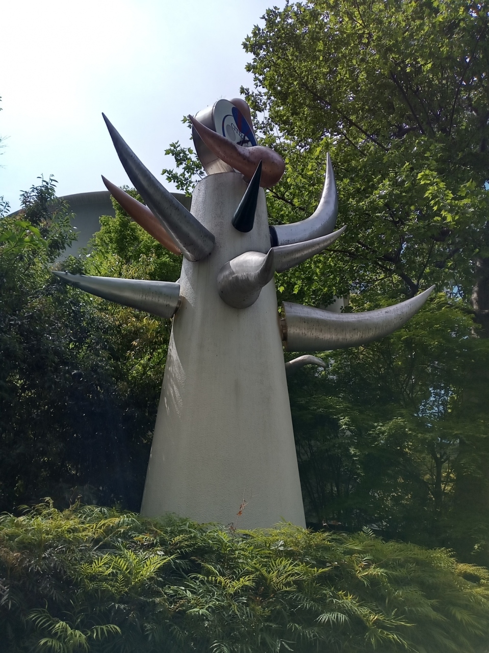 東京・銀座の数寄屋橋公園に岡本太郎氏のオブジェがあります。「若い時計台」というオブジェで、有名な大阪万国博覧会(大阪万博)の「太陽の塔」によく似ています。