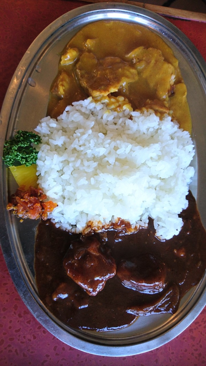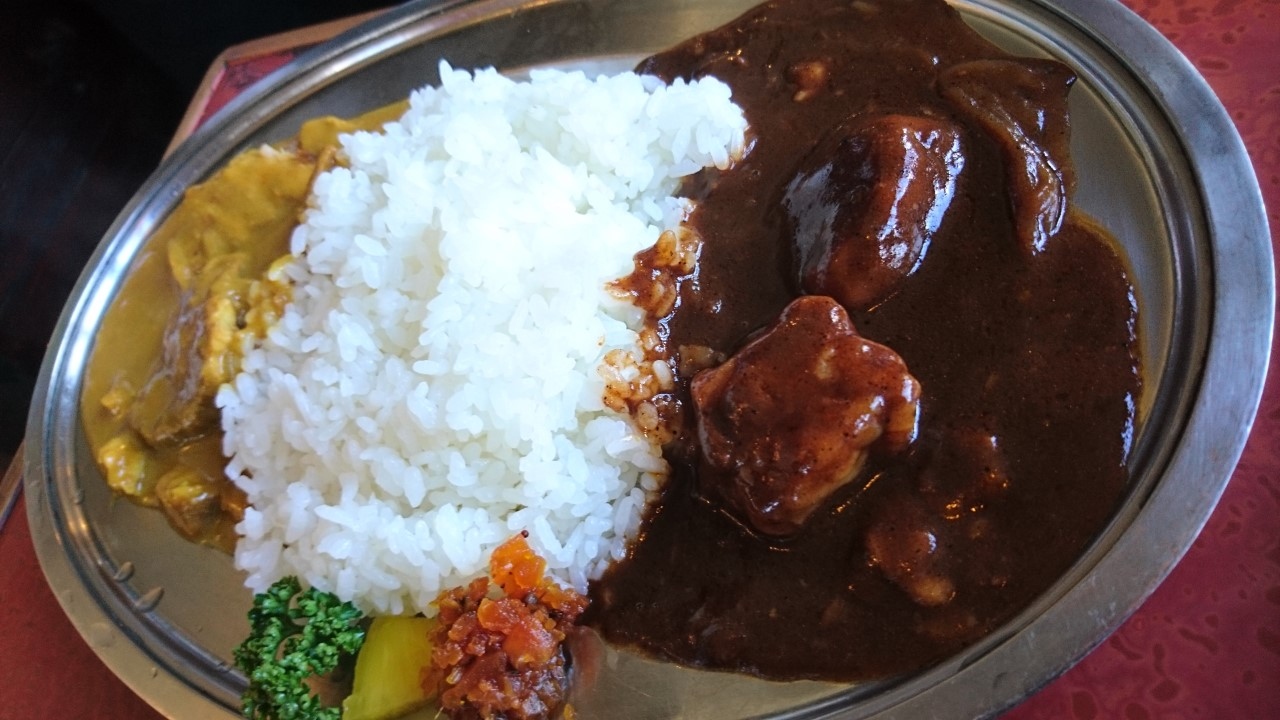 なわて通りを女鳥羽川をはさんだ反対側にある老舗の洋食屋さんです。時代遅れの洋食屋とありますが、まったくそんな感じはしません。逆に時代の遥か先頭を行っているかのようです。メニューを見るとおいしそうなものが並んでいます。どれにしようか、迷いに迷ってカレーとハヤシソースの両方が味わえる「ハーフ&ハーフ」にしました。しっかりと後味に辛さが来るカレーと味わい深いハヤシソースの両方が味わえるこのメニュー、とてもおいしかったです。お店の雰囲気も最高で、家族連れもいました。地元の人に愛されているのが見た目にも味にも伝わってきました。