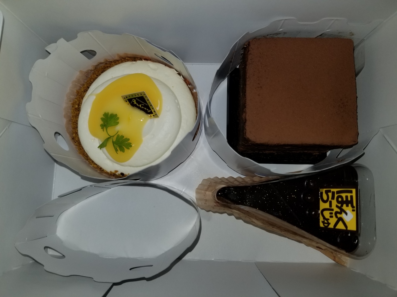 チョコレートケーキ、レモンタルト、絹のショコラを買いました。
