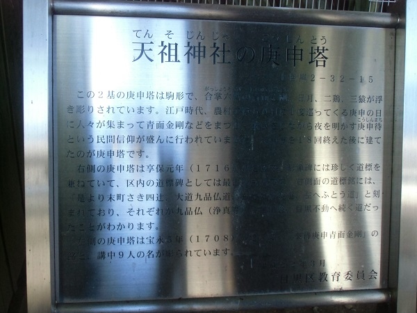 境内には。宝永5年(1708)と、道標をかねている享保元年(1716)の2基の庚申塔が建立されています。
