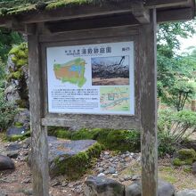 福井県一乗谷朝倉氏遺跡にある四つの国の特別名勝庭園跡の一つで、朝倉氏館の後ろ側の一段高くなった場所にあります。ボランティアガイドさんの話では、岡本太郎がここを訪問されたとき 感動のあまり その場を長時間離れられなかったとのことです。そう言われて 改めて見直しました。素晴らしい庭園です。