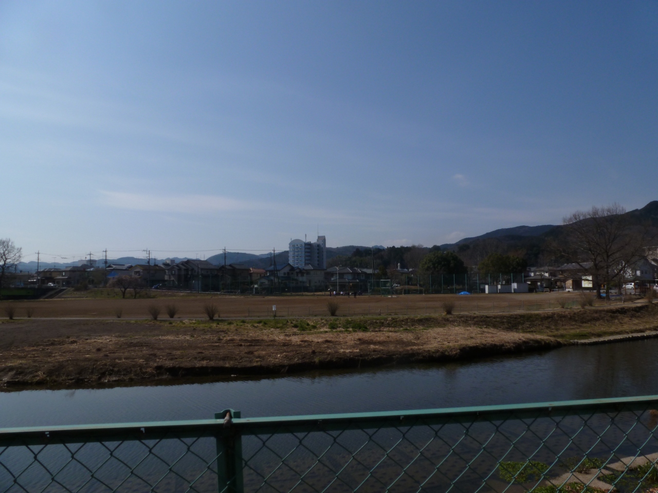 裏には越辺川があり、対岸はいこいの広場で散歩している老夫婦がいました。