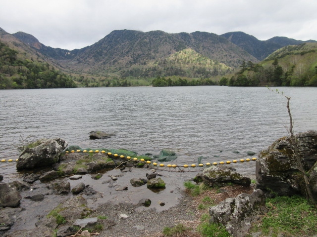 気温は中禅寺湖畔よりもずっと低くて5月でも寒い。釣り客は腰下まで水の中に入っているから、風邪をひかないかな、って心配しちゃいます。
