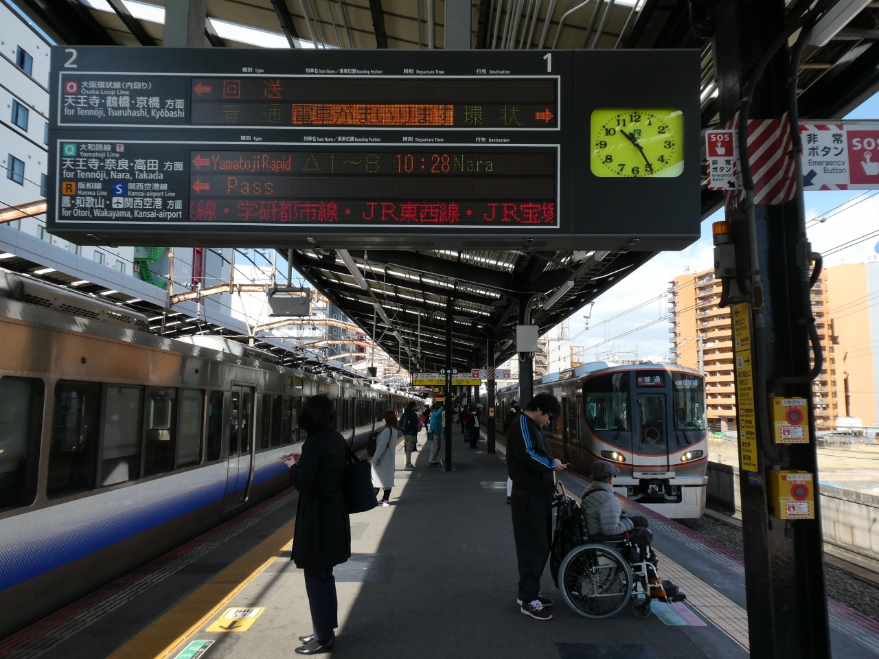 新今宮駅と京橋駅のホームは混雑してましたが車内はなぜかガラガラでした。