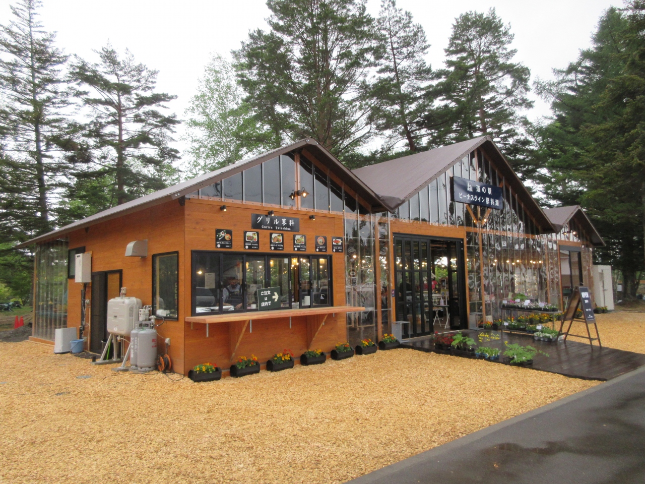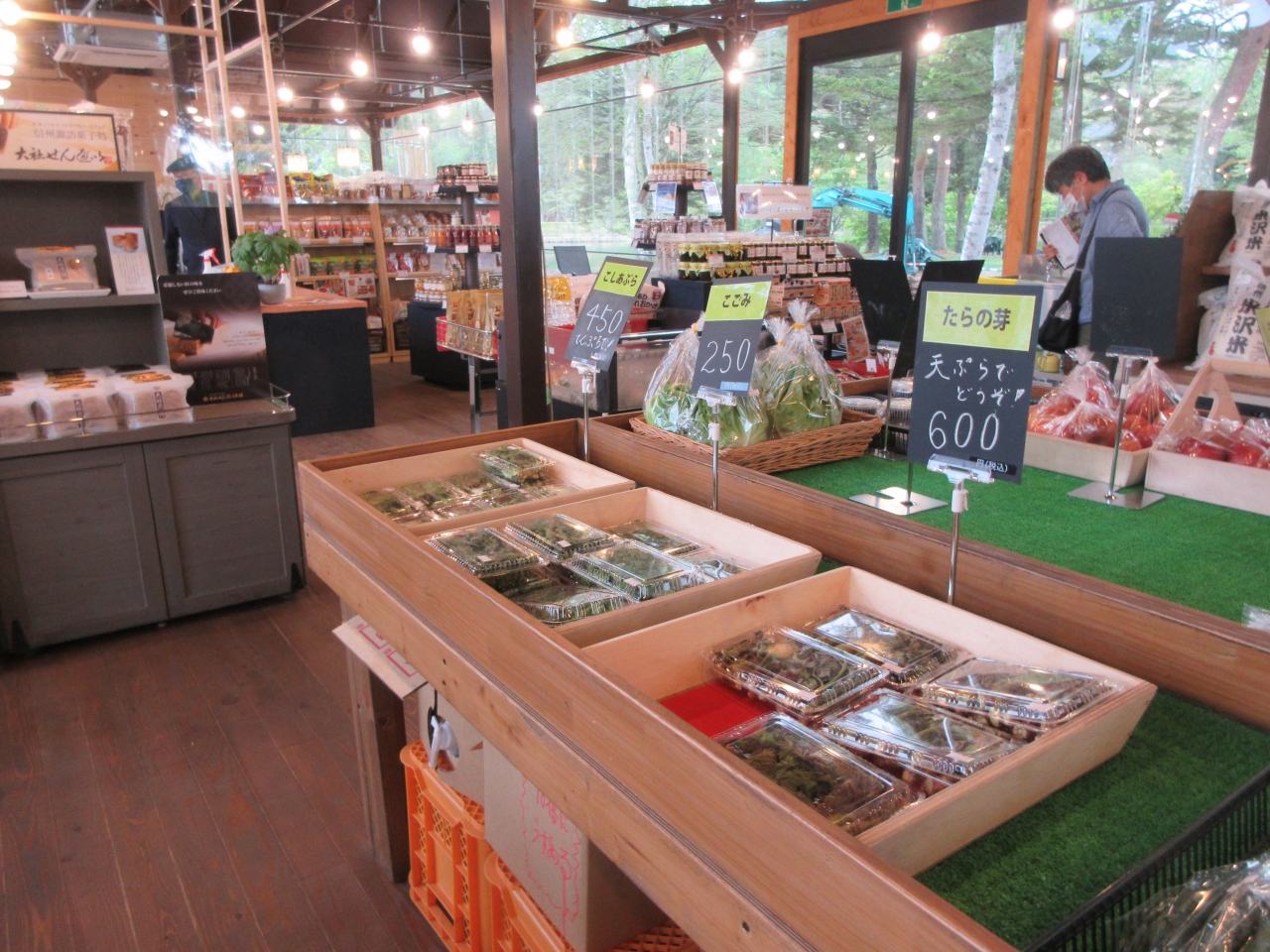 ビーナスライン沿いの蓼科湖駐車場にある道の駅です。昨年まで狭い店でしたが、天井の高い立派な店になりました。入口の左にグリル蓼科のイートインスペースがあり、右に信州物産品と山野草が売っています。軽井沢にある店の商品や白樺高原の牧場の商品などの食品を販売しています。日持ちのするフルーツゼリーの色鮮やかさにひかれて購入しました。残念ながら山形県産でした。5月中旬だったので野菜が少なく、道の駅のイメージとは少し異なる感じでした。