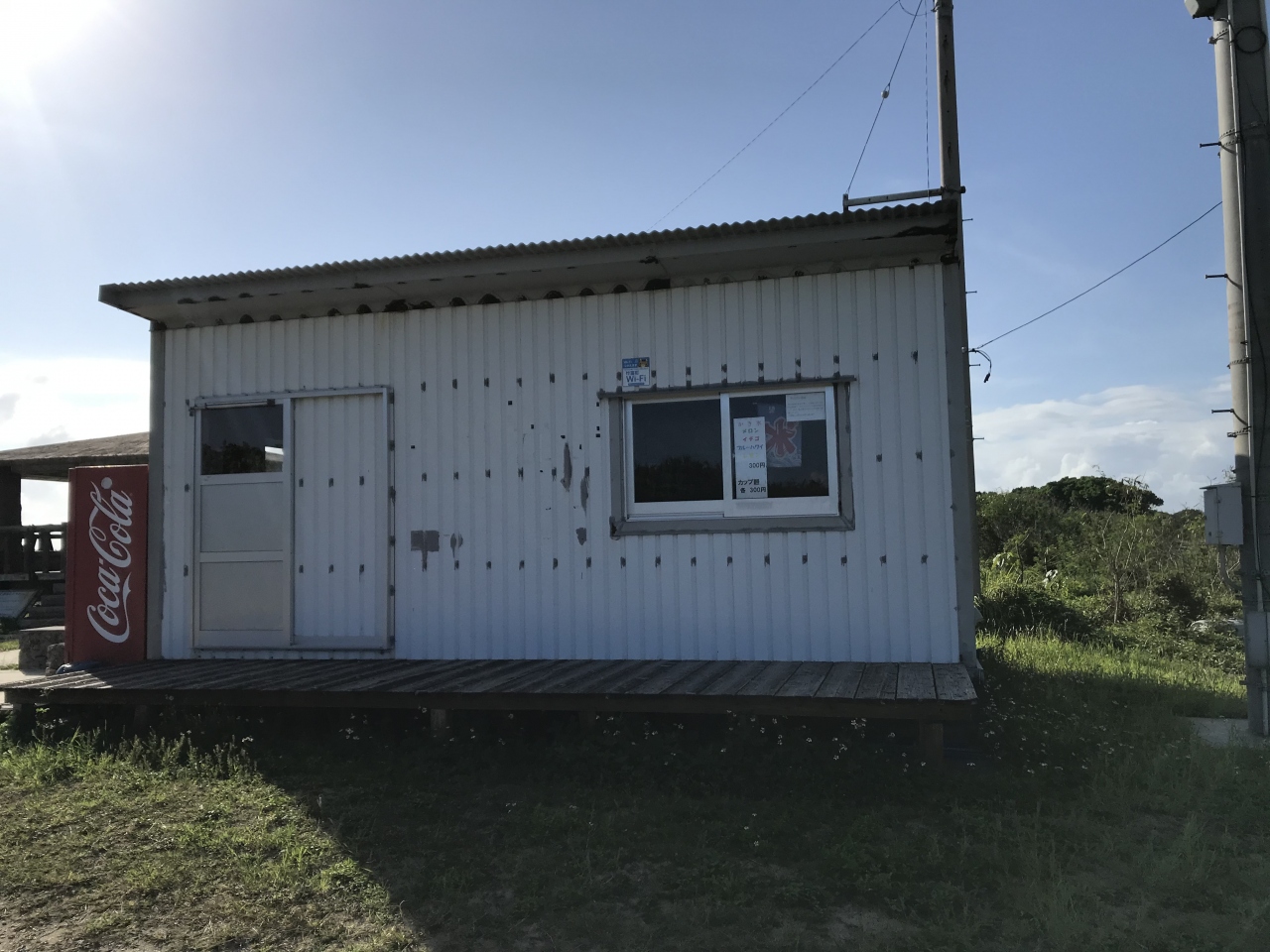 黒島のシュノーケリングスポットである仲本海岸にある、プレハブ小屋が海の家です。