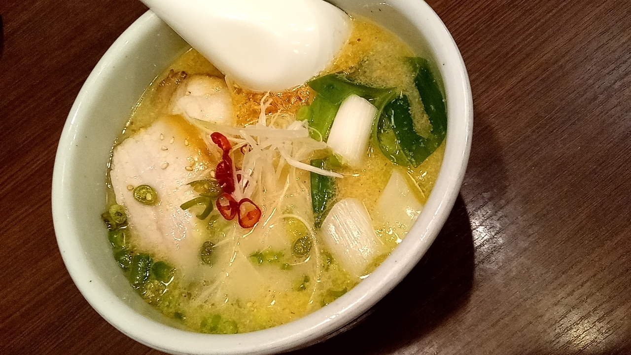 『青唐辛子仕立ての豚骨しお』をいただきましたが、青唐辛子がピリリと辛く、とても美味しかったです!ちょっとしたストレス発散です。