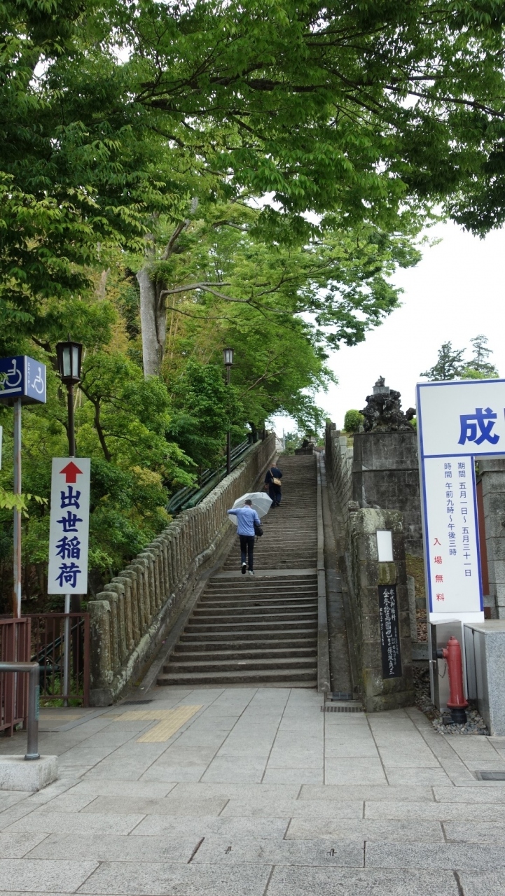 成田あたりのエリアを散策中こちらの場所を訪れました。成田山新勝寺の大本堂前を左手に進んでいくと、その先に長い石段が有り上がっていくと出世稲荷へ着きます。段数が有るので少し疲れますが境内を効率よく回れて便利です。