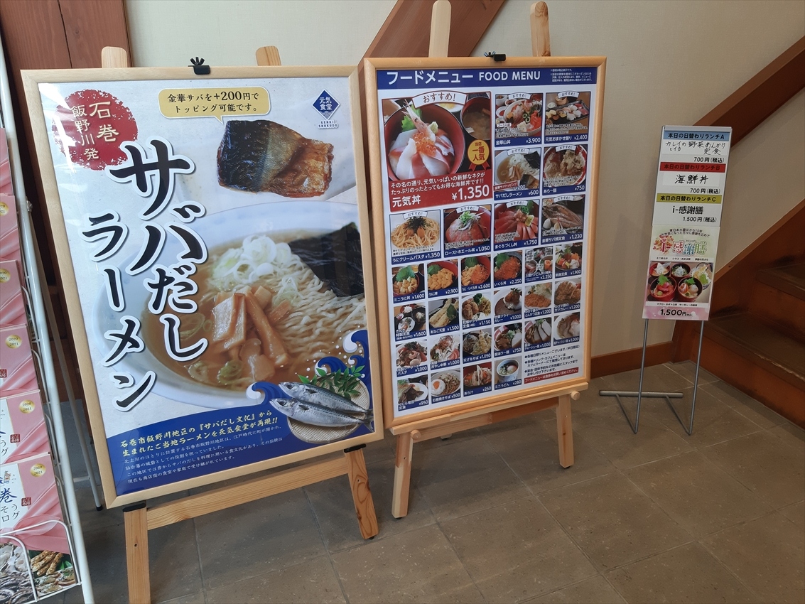- 田代島へのフェリー≪網地島ライン石巻中央発着所≫そばにある≪いしのまき元気いちば≫の2階。 JR石巻駅から徒歩だと10分ほど。