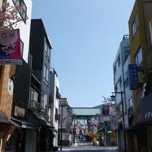 成田山東京別院深川不動堂の参道に位置づけられる通り。門前仲町駅出口でてすぐ。