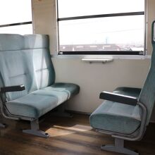 車内は窓を背にしたロングシートとボックスシートが半々ずつある形になっていますが。短距離路線で通勤需要がかなりあると思われるこの路線に4人掛けのボックスシートはいらないのでは・・・