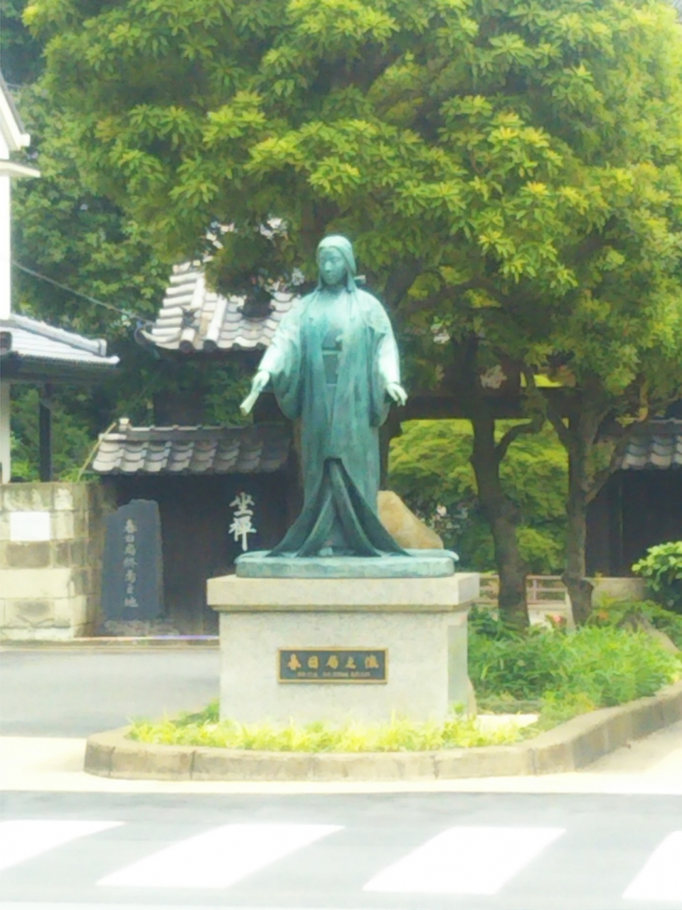 御徒町から春日通りを湯島天満宮を抜けた当たりに銅像がありましたも。麟祥院というお寺の前にあります。映画やドラマなどでもとりあげられる大奥の元締めとしても歴史上で有名な人物です。以前は違う場所にあったらしいです。凛とした姿が美しいです。