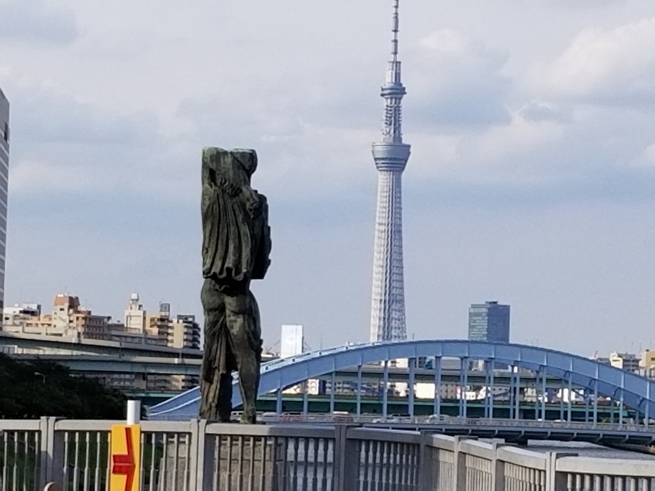 新川と佃を結ぶ中央大橋の兜の前立てを逆さにしたような中央部分にいるメッセンジャー像。
