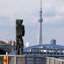 スカイツリーを向いて橋から突き出た土台の上に建っている。