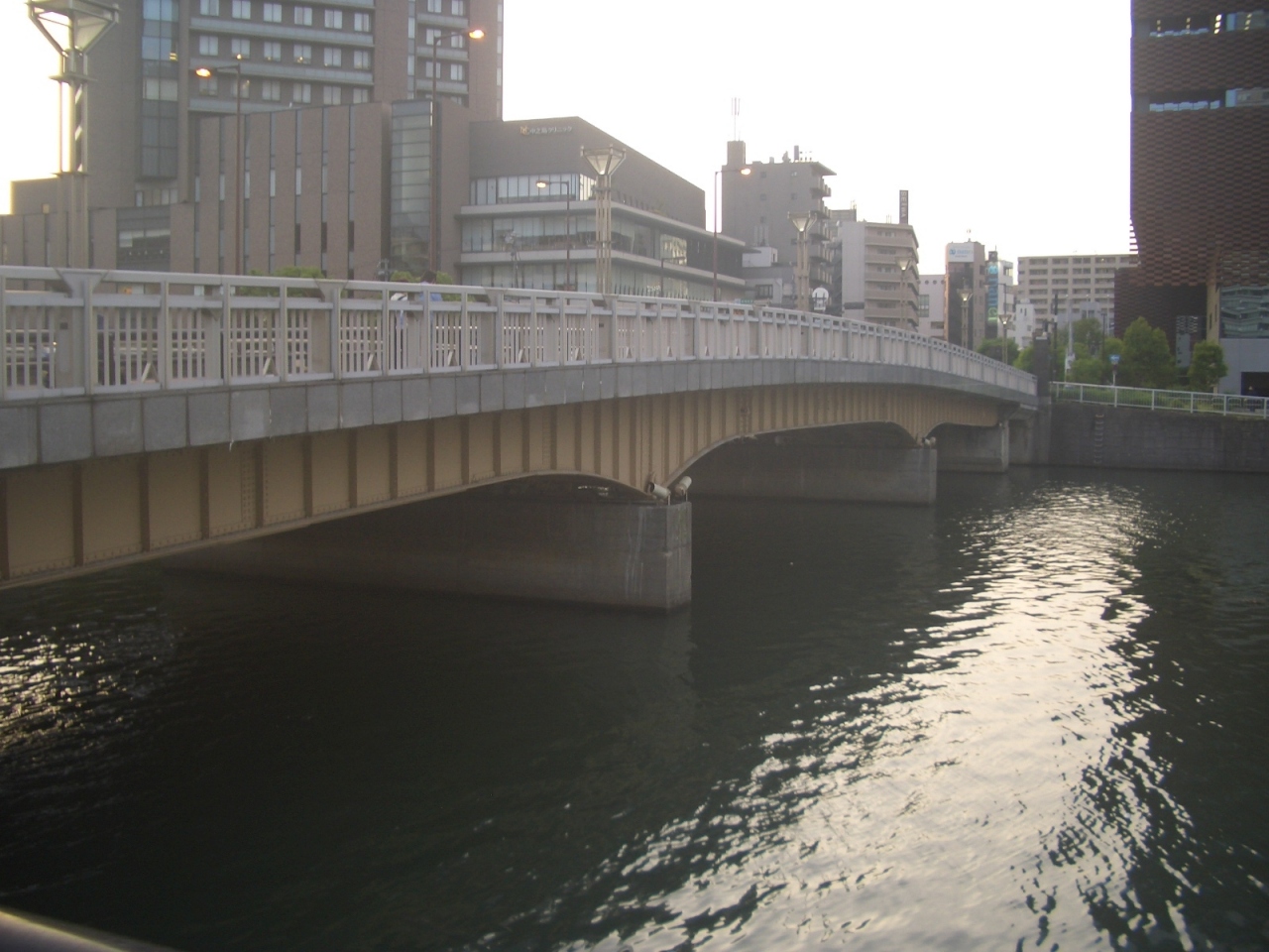 玉江橋は、堂島川に架かるなにわ筋の橋です。浪速の名橋50選に選ばれている橋です。橋の北側には、ABCテレビの社屋、中津藩屋敷跡、福沢諭吉誕生の碑などがあります。橋長は上流側77.0m、下流側78.8m、幅員は上流側13.0m、下流側12.3mの鋼桁橋です。中之島には、色々な橋が架かっていますので、興味がある方は巡られては如何でしょうか。