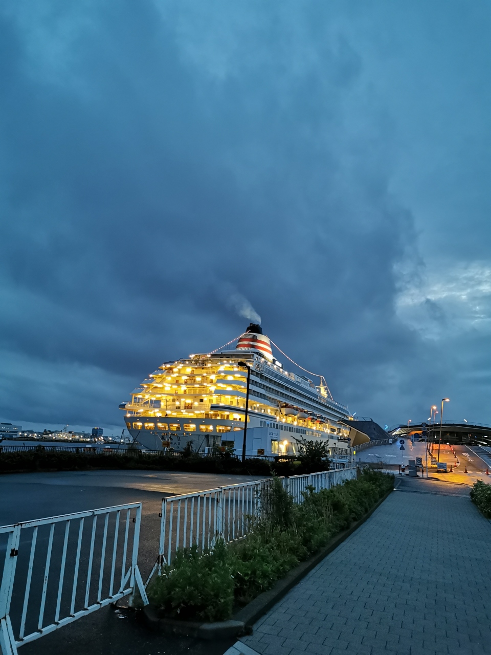 横浜みなとみらいの横浜港大さん橋国際客船ターミナルに行きました。客船の飛鳥Ⅱが来ていると知って早朝訪問です。大さん橋には定期的に大型客船が来訪しますので見応えがあります。客船の大きさは想像以上で一見の価値ありです。